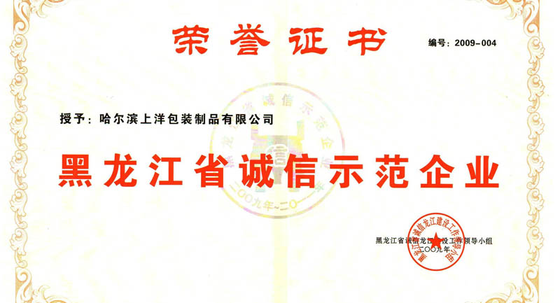 On Dec. 2, 2009, Shangyang Packaging was included into the first list of Heilongjiang Model Company of Integrity.