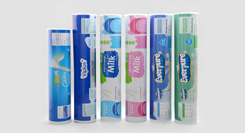 Упаковка питания для новорожденных и малолетних детей, молочных продуктов, соевых изделий, сухого молока во вращающиеся пакеты.